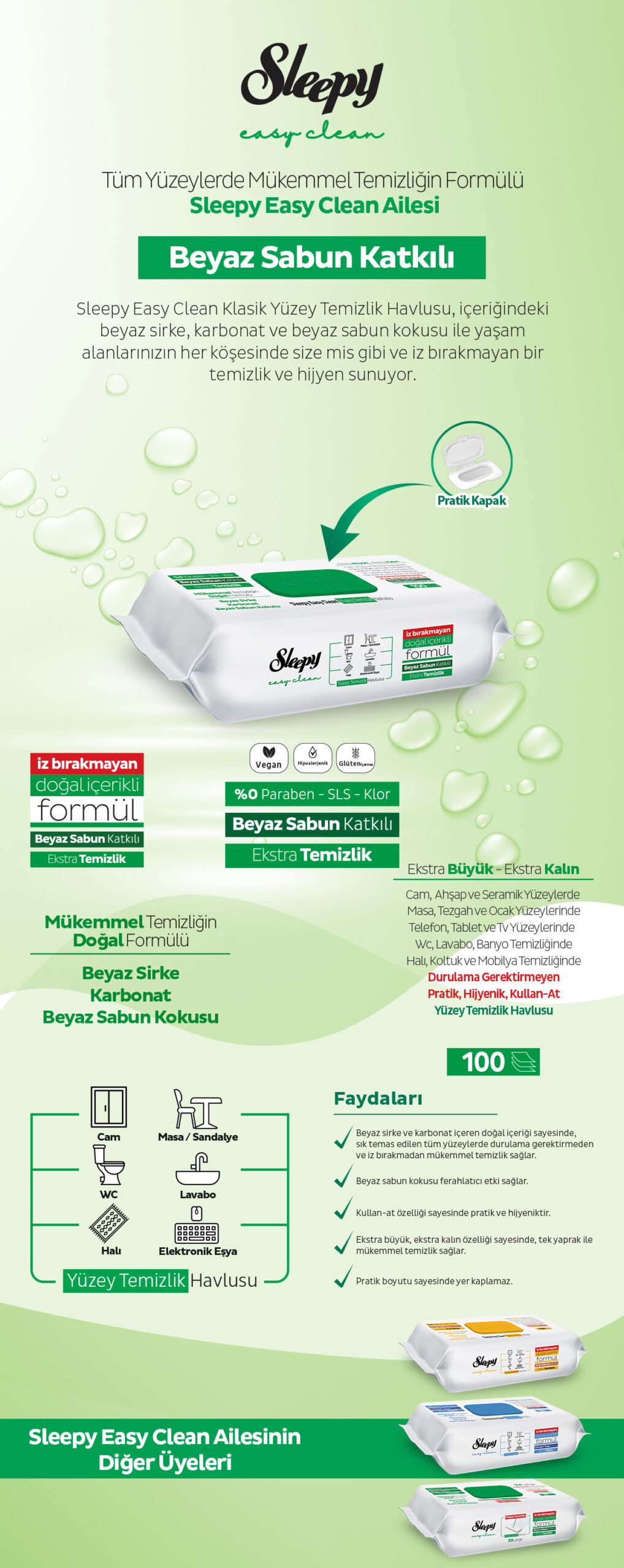 Sleepy Easy Clean | Arap Sabunu Katkılı | 100 Yaprak | 1 Paket